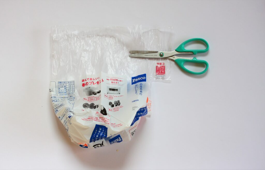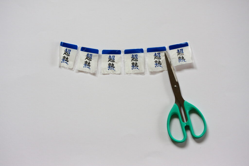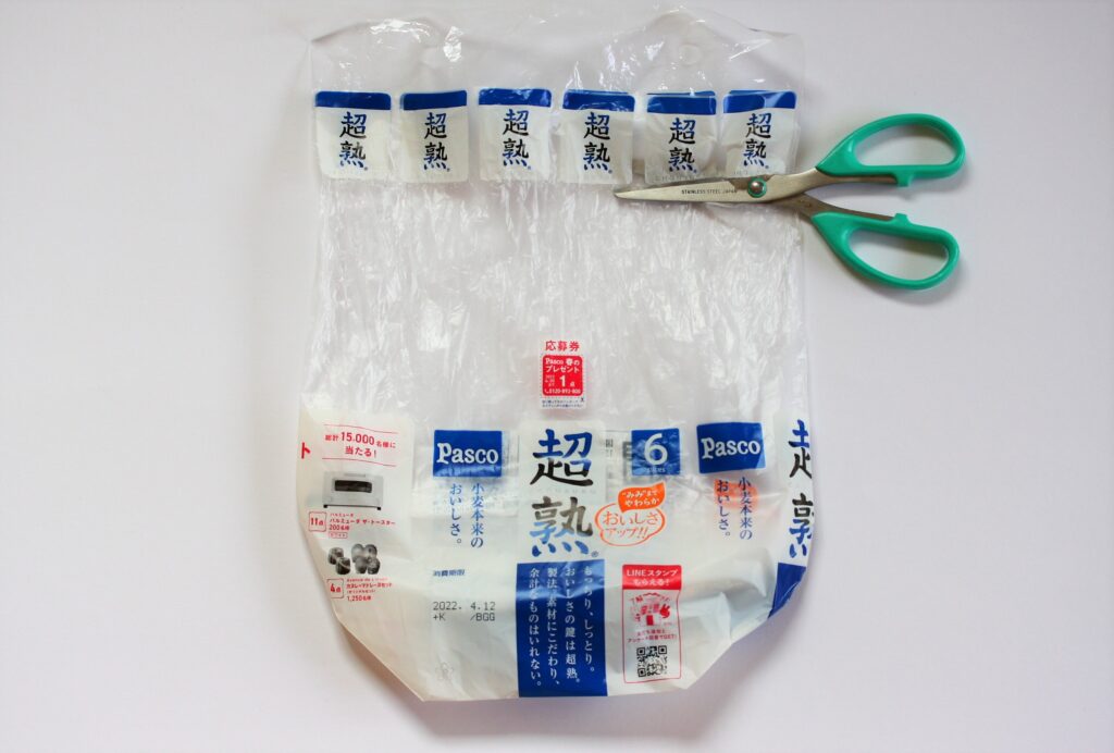 - 最初に切った超熟の文字の書いてある袋に切り込みを入れます。