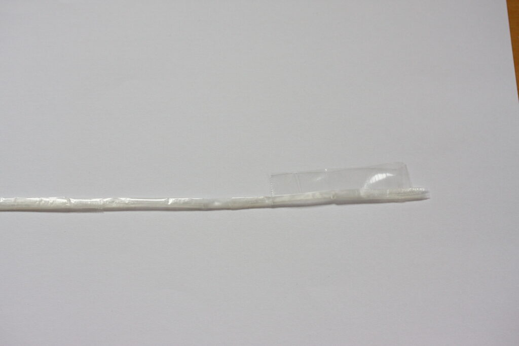 - 切った袋を小さく折りたたんで所々セロテープで止めます。