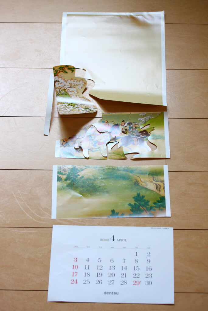 - カレンダーにのっているキャラクターや動物、人間など、と背景に使えそうな部分を切り取ります。