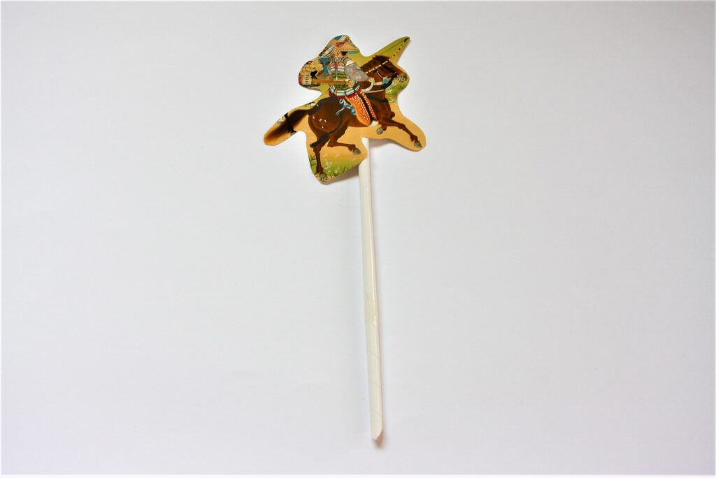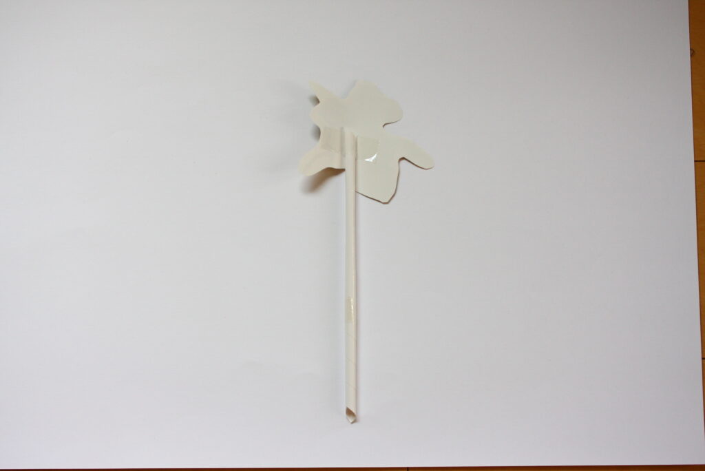 - キャラクターの裏側から、棒をセロテープで貼り付けます。