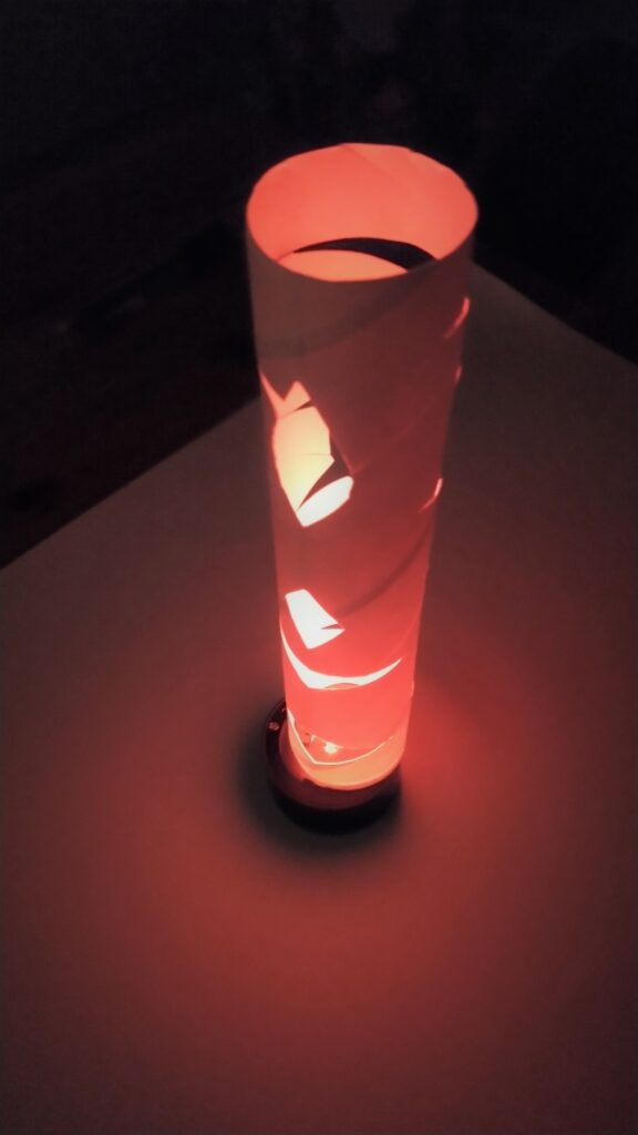 - 完成です!ここではどんな風に光るのか分かりません。部屋を真っ暗にしてライトをつけてみましょう。