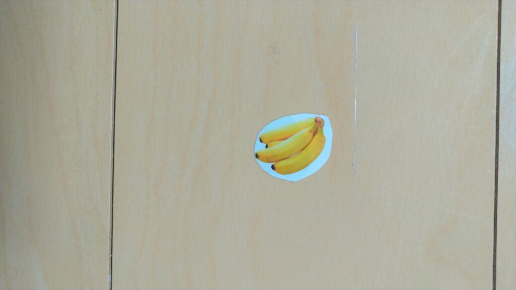 - 太い透明セロテープで切り取ったものを床に貼ります。