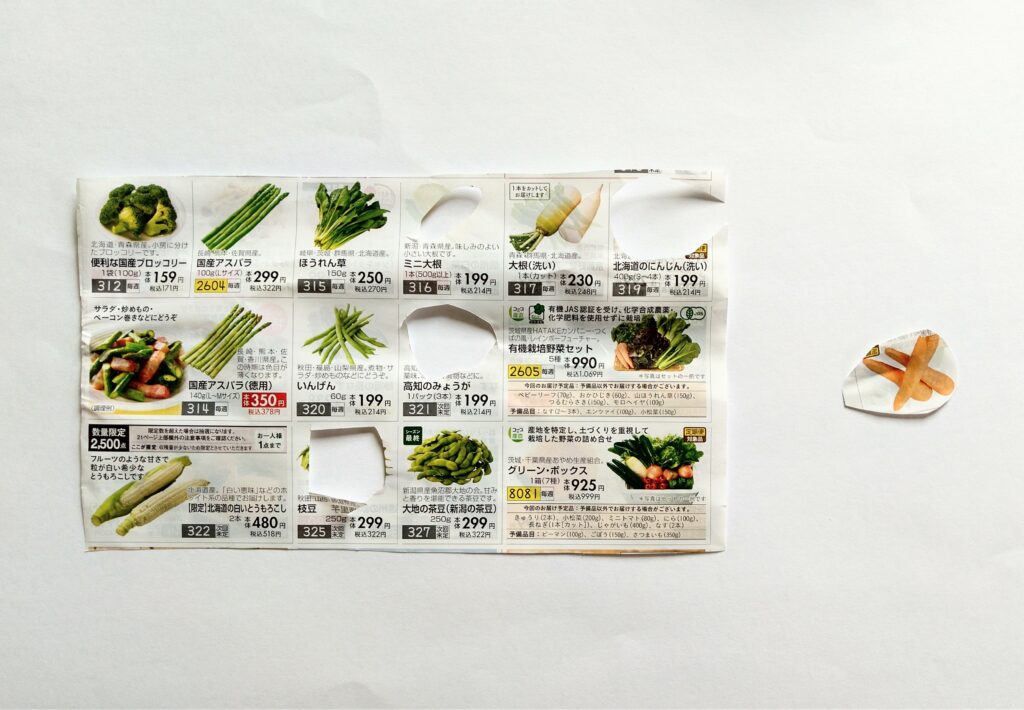 - ちらしを貼った上から封筒の切れ端を貼ります。